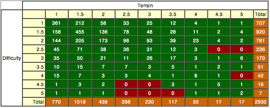 Average total cache difficulty: 1.78 - Average total terrain rating: 1.82